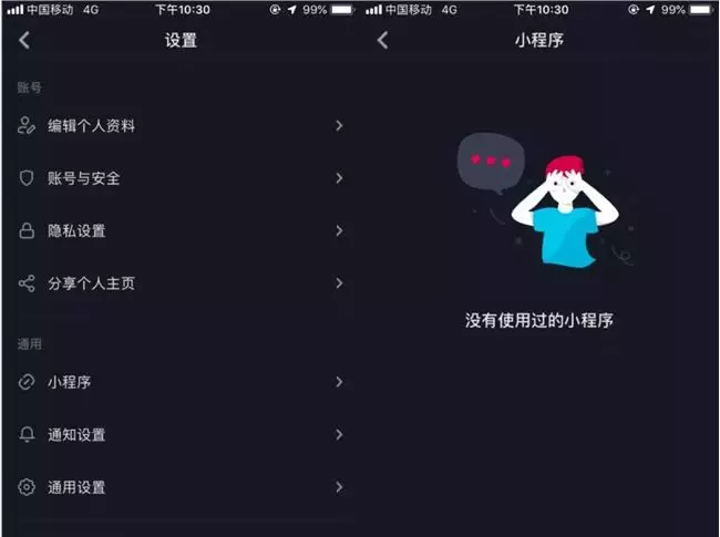 在前不久更新的ios抖音3. 0 版本中,抖音設置-通用界面出現了小程序入口,點擊會顯示“使用過的小程序”。
