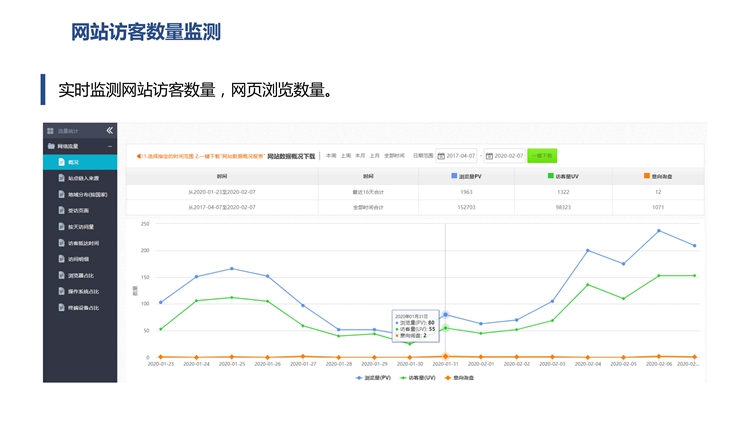 | 訪客流量統(tǒng)計(jì)系統(tǒng) | √ | 擁有全面的訪問(wèn)數(shù)據(jù)統(tǒng)計(jì),助力企業(yè)運(yùn)用數(shù)據(jù)分析推廣成效。 | |