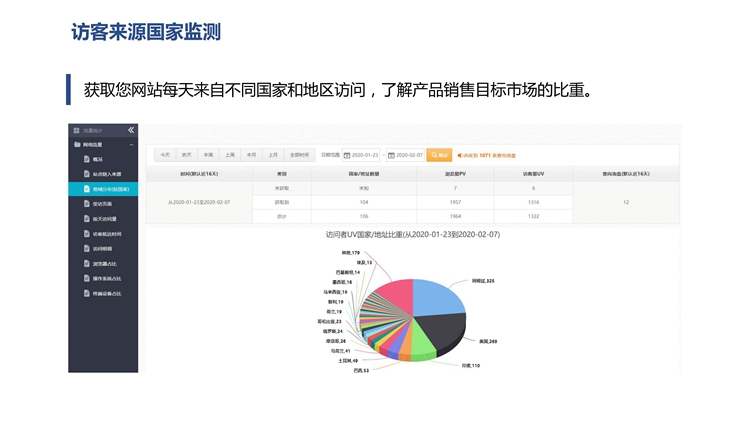 | 國(guó)家來(lái)源監(jiān)測(cè)系統(tǒng) | √ | 對(duì)來(lái)源地區(qū)踐行監(jiān)測(cè)分析,有助于全局把握消費(fèi)者市場(chǎng),調(diào)整推廣方向和力度。 | |