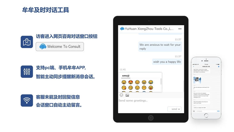 | 牟牟即時(shí)對(duì)話工具 | ×(1000元/年) | 訪客進(jìn)站提醒,主動(dòng)向正在瀏覽網(wǎng)頁(yè)的采購(gòu)商發(fā)起聊天,有效提升詢盤率。 | |