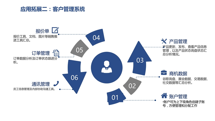 | CRM | 客戶管理系統(tǒng) | ×(1000元/年) | 系統(tǒng)包括客戶管理、客戶跟進(jìn),并對(duì)外貿(mào)人員進(jìn)行精細(xì)化管理,有效從內(nèi)、外雙向知道外貿(mào)營(yíng)銷進(jìn)程。 |